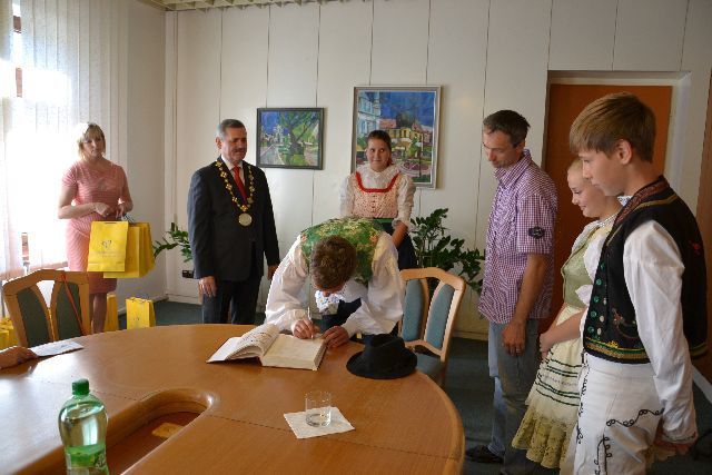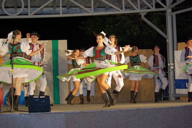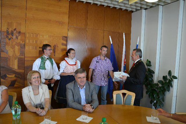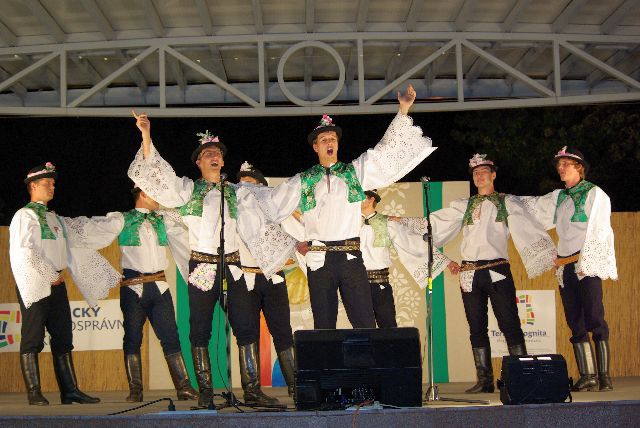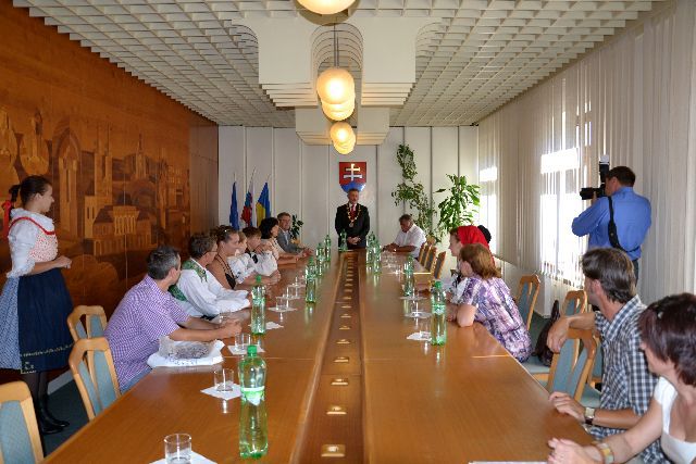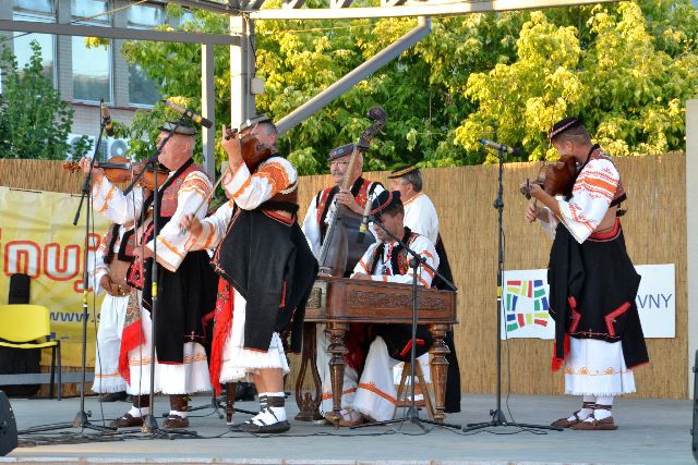 Slávnostné prijatie zástupcov súborov u primátora mesta a program "Hrajú Vám jubilanti" - Hnojňaňe z Mihaľovec a ich hostia a Galaprogram - FS Demižón Strážnica a FS Zemplín Michalovce.