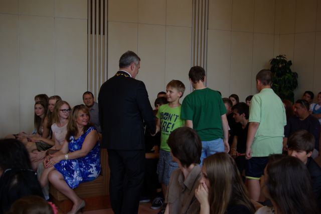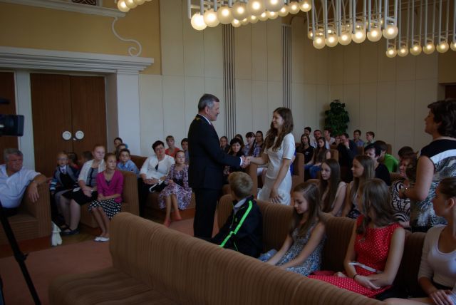 Najúspešnejších žiakov, žiačky a kolektívy ZŠ a ZUŠ prijal primátor mesta Viliam Zahorčák dňa 25. 6. 2014 v obradnej sieti Mestského úradu v Michalovciach za prítomnosti svojho zástupcu MUDr. Benjamína Bančeja a vedúcej odboru školstva, kultúry a športu Ing. Kataríny Polákovej.