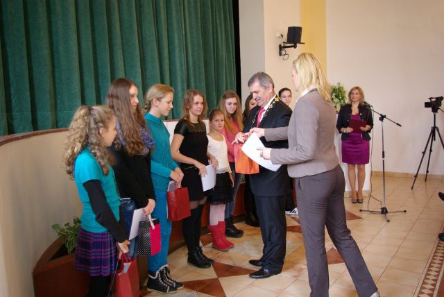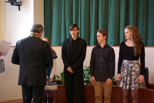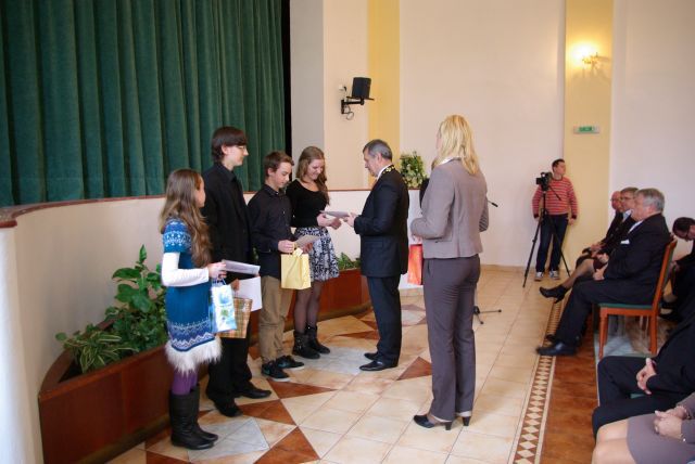 Primátor mesta Viliam Zahorčák v uplynulých dňoch v spoločenskej sále Zlatého býka v Michalovciach za prítomnosti vedenia mesta prijal najúspešnejších žiakov a najúspešnejšie kolektívy michalovských základných škôl a Základnej umeleckej školy, ktorí dosiahli výrazné úspechy v školskom roku 2013/2014 na úrovni Slovenska a v medzinárodných súťažiach v predmetových olympiádach ako i vo vedomostných, kultúrnych a športových súťažiach. Ako vo svojom úvodnom príhovore primátor mesta zdôraznil, mesto kladie veľký dôraz na výchovu mladej generácie, na vytváranie čo najlepších podmienok na ich osobnostný rast na jednotlivých školách v meste. Je potešujúce, že spätne sa to premieta na dosahovaní vynikajúcich výsledkov týchto žiakov na jednotlivých druhoch súťaží v rámci Slovenska, ale i v medzinárodnom meradle. Dôkazom toho bolo i prijatie 116 žiakov, ktorí v uplynulom období výraznou mierou zviditeľnili svoju školu, mesto, ale i celý náš región. Slová vďaky z úst primátora mesta boli adresované nielen už spomínanými prítomným žiakom, ale i vedeniam jednotlivých škôl na území mesta, ich učiteľom a rodičom, ktorí rozhodnou mierou prispeli k dosiahnutiu týchto krásnych výsledkov.