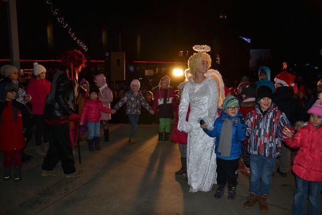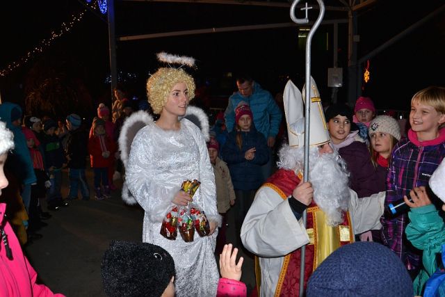 V piatok 4.12. sa naše mesto rozžrialilo stovkami svetiel.... Detičky privítali Mikuláša, čerta a anjela. Spolu si zatancovali, zaspievali a Mikuláš ich za to obdaril sladkou odmenou.